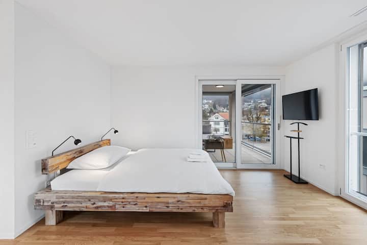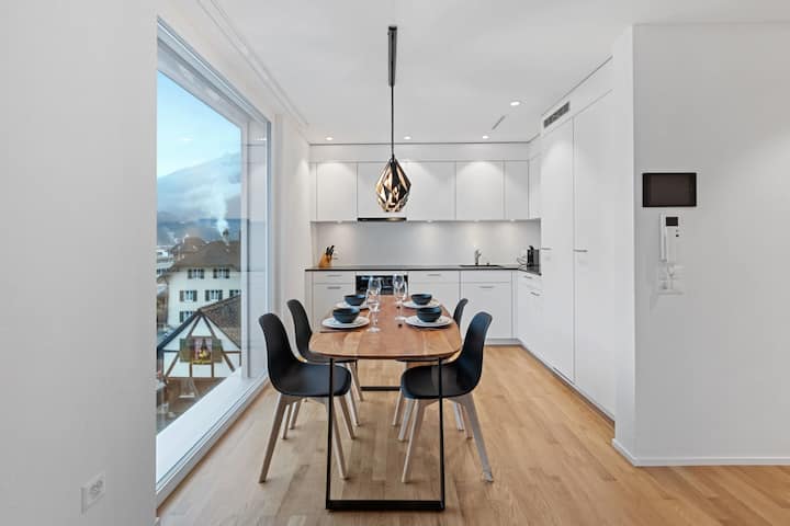 Experience the charm of modern living at The R Apartments Engelberg, a stylish, private studio perfect for tourists and business travelers alike. Nestled in the idyllic Solothurn region, this cozy space is ideal for mid-term stays. Just a 5-minute walk from the nearest public transport station, explore local attractions with ease. Enjoy the convenience of free parking. A serene retreat for two awaits your discovery!