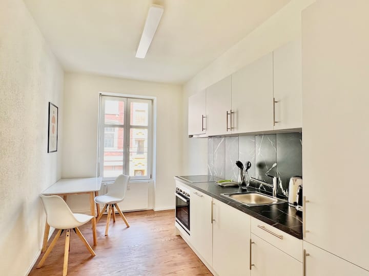 Welcome to The R Apartments Margaretha, your modern Basel retreat! Ideal for tourists and business travelers alike, this private apartment comfortably accommodates up to 6 guests. Nestled just a 5-min walk from the nearest tram station, explore Basel’s rich culture or reach business districts effortlessly. While parking is available off-site, the vibrant neighborhood itself invites you to stroll and discover. Perfect for mid-term stays, book now and experience Basel like a local!