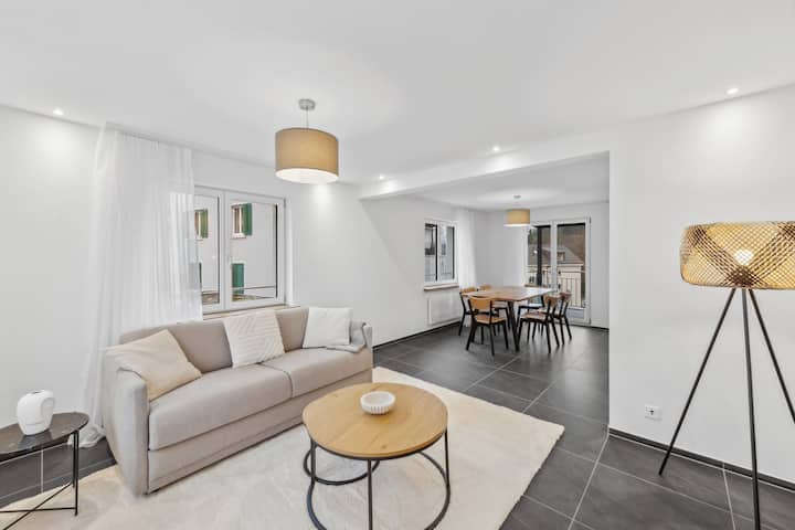 Experience the blend of modern comfort and strategic location at The R Maisonette Rheinfall! Perfect for business travelers and tourists alike, this chic apartment accommodates 6 guests. Just a 5-min walk from public transport station, and close to the majestic Rhine Falls, it’s ideal for mid-term stays. Enjoy the ease of free parking. A perfect gateway or a serene workspace awaits you. Book now for an unforgettable stay!